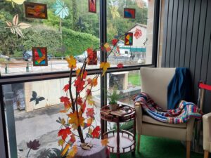 Pendant ce temps, l’entrée de l’établissement a pris ses couleurs d’automne.